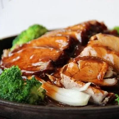 poulet, soja, oignons fanes, cébette, oeuf, carottes et oignons | ||