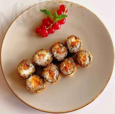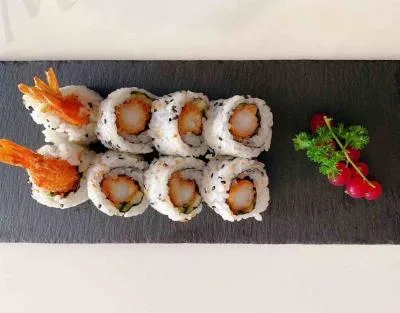 8 pièces - tempura scampi et concombres enroulés de mangue | ||