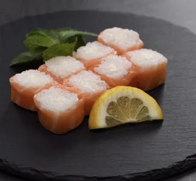 8 pièces - saumon, cheese (piladelphia), surimi, ciboulette, tobiko et avocats | ||