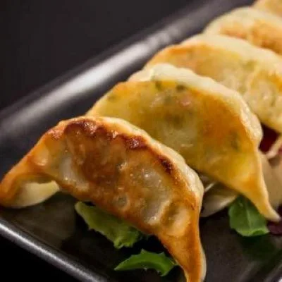 6 pièces - raviolis japonais au poulet, carottes, oignons fanes et cébette - accompagnés de sauce soja satay piquante | ||