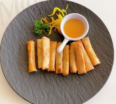 10 pièces - au poulet, carottes. oignons fanes et cébette - accompagnés de sauce aigre-douce | ||